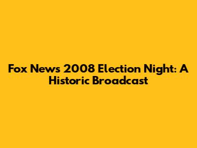 Fox News 2008 Election Night: A Historic Broadcast