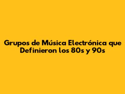 Grupos De Música Electrónica Que Definieron Los 80s Y 90s
