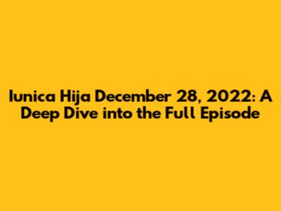 Hey guys! Let's dive deep into the world of Iunica Hija and specifically, the full episode that aired on December 28, 2022. This particular episode was a whirlwind of emotions, drama, and some seriously captivating storytelling. For those of you who might be new to the series, or maybe just need a refresher, this breakdown is for you. We'll be looking at the key plot points, character developments, and overall impact of this specific episode. Buckle up, because we're about to get into it!
