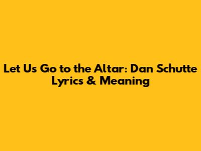 Hey guys! Ever heard that beautiful hymn, "Let Us Go to the Altar"? It's a classic by Dan Schutte, and it's just perfect for reflecting on faith and community. This article will dive deep into the lyrics and uncover the meaning behind this timeless song. So, let's get started and explore why this song continues to resonate with so many!