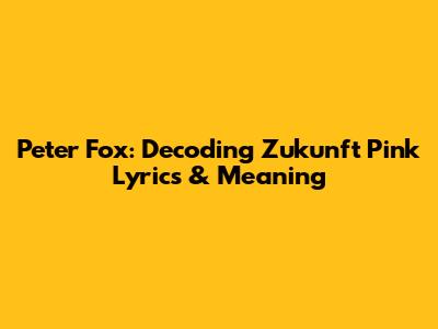 Hey guys! Ever found yourself grooving to a song without really grasping what it's all about? Well, let's dive deep into the vibrant world of Peter Fox and unpack the lyrical genius of "Zukunft Pink." This track isn't just a catchy tune; it's a rollercoaster of emotions, social commentary, and a whole lot of pink optimism. So, buckle up, and let’s break it down!