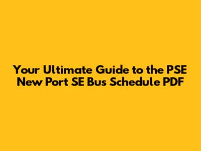 PSE New Port SE Bus Schedule PDF Guide